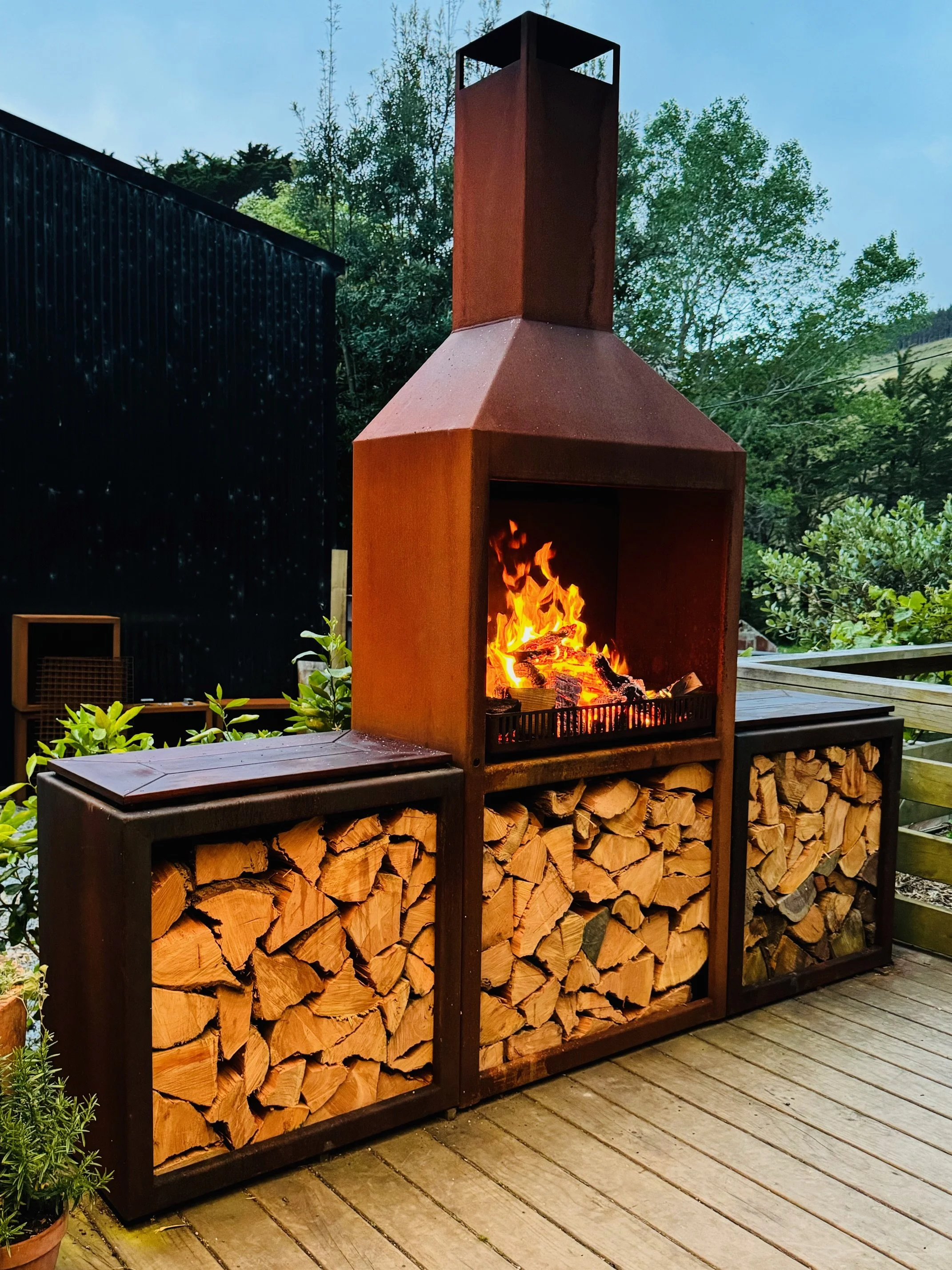 Made of hard-wearing corten steel - perfect for live fire cooking and outdoor entertaining.